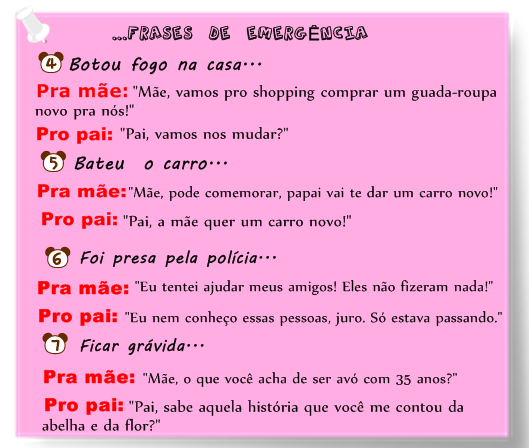 - Correio do Mal: Eu e minha amiga estavamos andando na rua, Aí o menino que ela era afim estava passando abraçado com uma garota e ela ficou olhando pra tras mas continuou andando. De repente ela deu de cara com aquelas caixas de correios que ficam pra fora da casa. O menino começou a rir da cara dela. Ela não sabia onde enfiar a cara... - Larissa Sandri, 14.