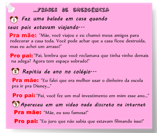 - Amigo Fail: Eu tinha ido a uma festa escondido da minha mãe, Aí no dia seguinte minha amiga me liga e fala: E aeee Garota Fumadaa, tudo namoral? Ou ainda tá de ressaca? Tu tava fumada demais ontem e ainda foi pra casa bêbada. O que ela não sabia era que a minha mãe que tinha atendido o telefone... - Isabeel Reinoso, 15.